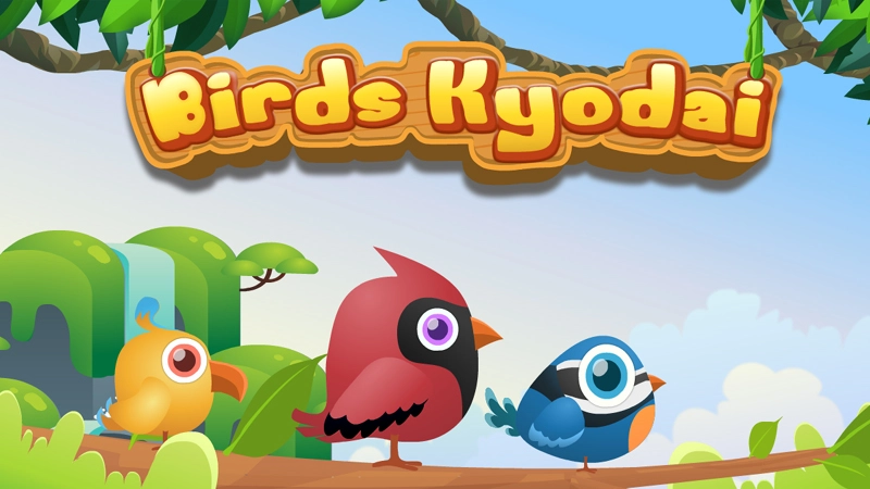Mahjong Connect game with Birds. Connect two of the same birds. The connecting line cannot have more than two 90 degree turns.